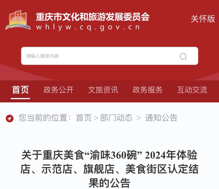 据市文旅委2024年9月5日公告消息,集团所属重庆颐之时饮食服务有限公司老四川解放碑店入选“重庆美食‘渝味360碗’2024年度旗舰店”。