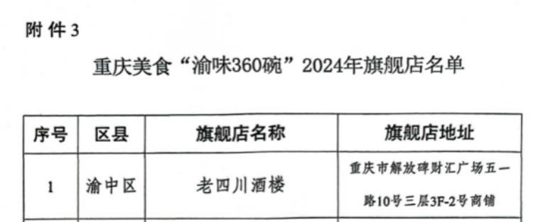 老四川解放碑店入选“重庆美食渝味360碗2024年度旗舰店”